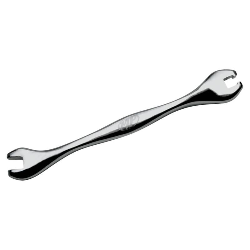 Use open end for quick adjustment of spoke nipples and semiclosed end for those hard to turn nipples that require more torque