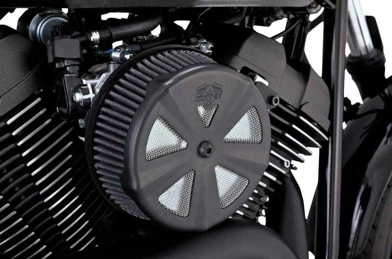 Add a touch of class to the VO2 Naked Air Intake with a Vance & Hines VO2 Skullcap Crown. Styled with subtle creasing and mesh, the VO2 Crown consists of a single steel stamping that bolts directly over the air filter element. Will also fit Screamin Eagle and other aftermarket air cleaner kits using a round air filter element with a center-bolt for the filter cover.
