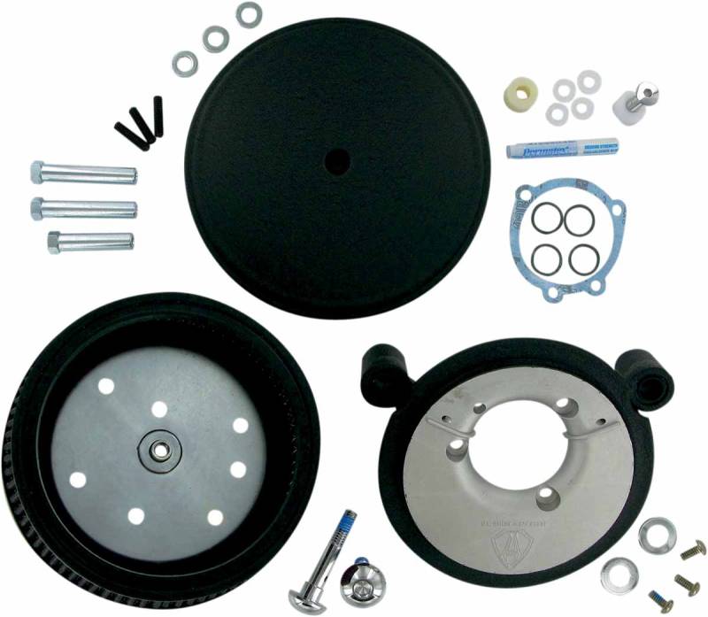 Arlen Ness Billet Sucker Stage II Air Filter Kit with Steel Cover - Smooth Black - Red Filter - 18-820