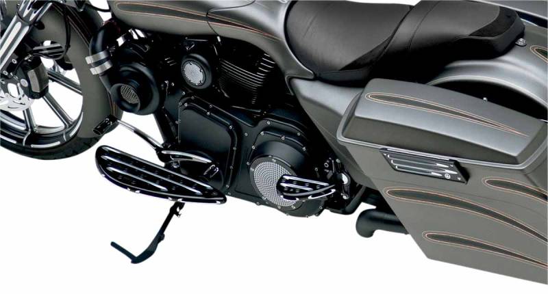 Available in chrome or black anodized finish; black anodized features machined accents on the top, bottom and side of the floorboard