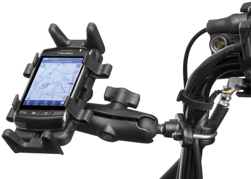 Mounts to both the brake/clutch reservoir or any round rail that is 0.5in. to 1.25in. in diameter. The base consists of a 1in. diameter rubber ball, hardware for mounting to both brake/clutch reservoirs and rails. The mounting hardware for brake/clutch reservoirs include both standard and metric mounting bolts. Also included is a 2.5in. diameter round base with the universal AMPS hole pattern. Multiple pivot points, rubber ball and socket technology allows for almost infinite adjustment and perfect viewing angles. High quality materials insure your device is safe, secure, and within easy reach