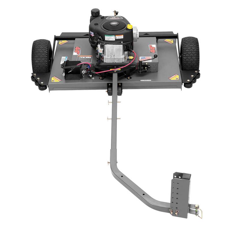 Can be pulled directly behind ATV or offset to left or right side for mowing where the ATV cant travel
