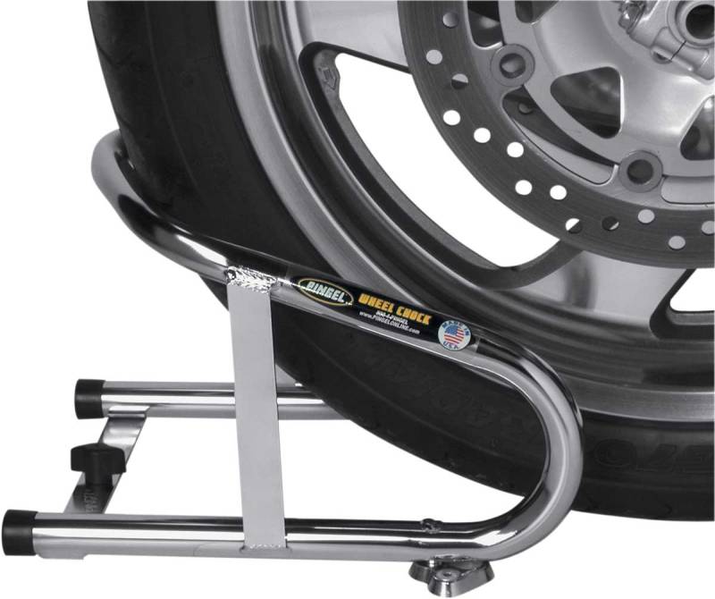 Removable chock is made of thick-wall steel tube construction with a show chrome finish