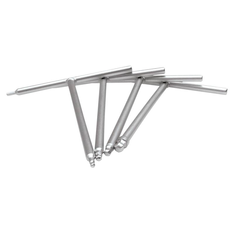 Use T-handle hex to tighten/loosen fasteners and ball-end hex on shaft for quick installation/removal of fasteners