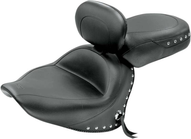 Mustang Wide Touring Two-Piece Seat with Driver Backrest - Studded - 79476