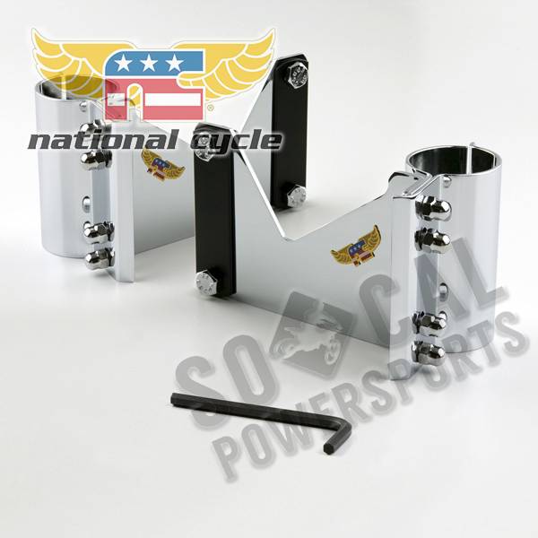 This quality hardware is manufactured by National Cycle. These custom brackets mount to the fork tubes.