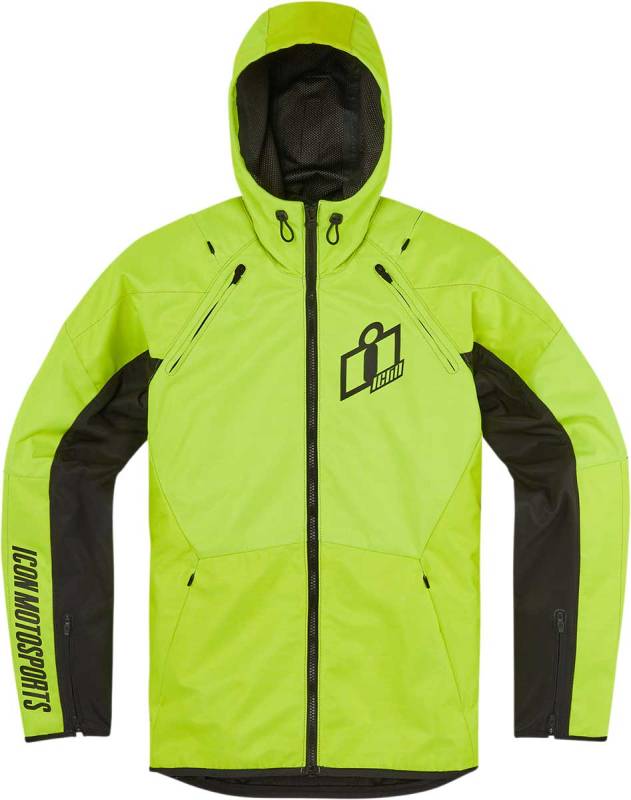 The hood game is strong at ICON. The Airform obliges with an iconic hood, which stows for high-speed motorcycle riding. The relaxed-fit chassis is built from lightweight reinforced polyester equipped with a full complement of D3O impact protectors (shoulder, elbow, back). Sufficient for light showers, the Airform jacket comes with our waterproof level WP1 rating. It easily adapts to summer riding with four intake/exhaust vents. Additionally, it features our AirFlymesh center vent for the ultimate in airflow. Comfort, style, and multi-season riding performance from the brand that invented hooded motorcycle jackets.