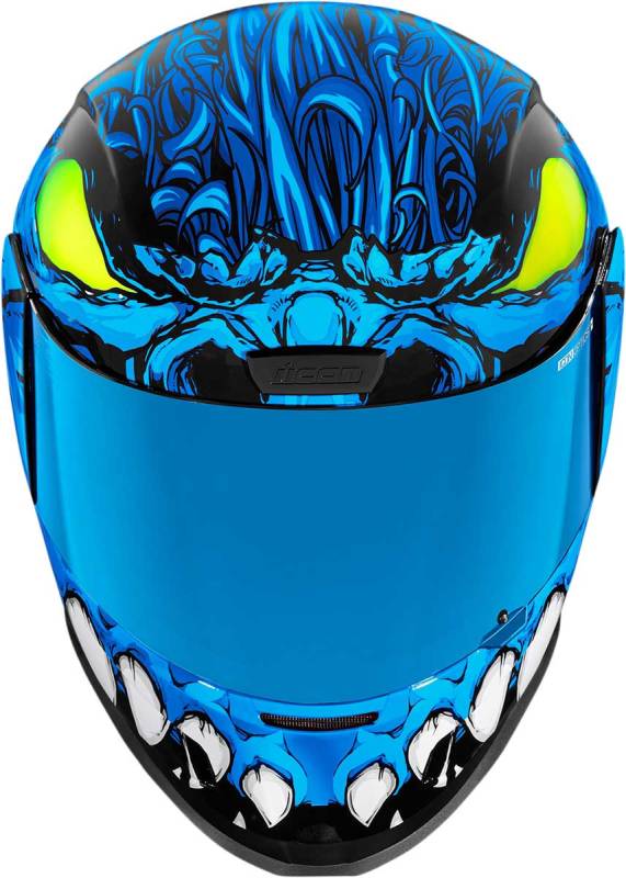 From the undisputed king of toothy tooth-laden helmets comes a throwback to one of our first evil grins, the Airform Manikr. First launched on a Mainframe helmet, this version features a strong polycarbonate shell, removable Hydradry comfort liner, both Fog-Free Clear & color-matched RST shields, and Dark Smoke internal DropShield. The exterior boasts glow-in-the-dark slobber, dayglo green spoilers, and a completely different spelling courtesy of our helmet designer. If you loved the original Manic, youre going to super love the Airform Manikr.