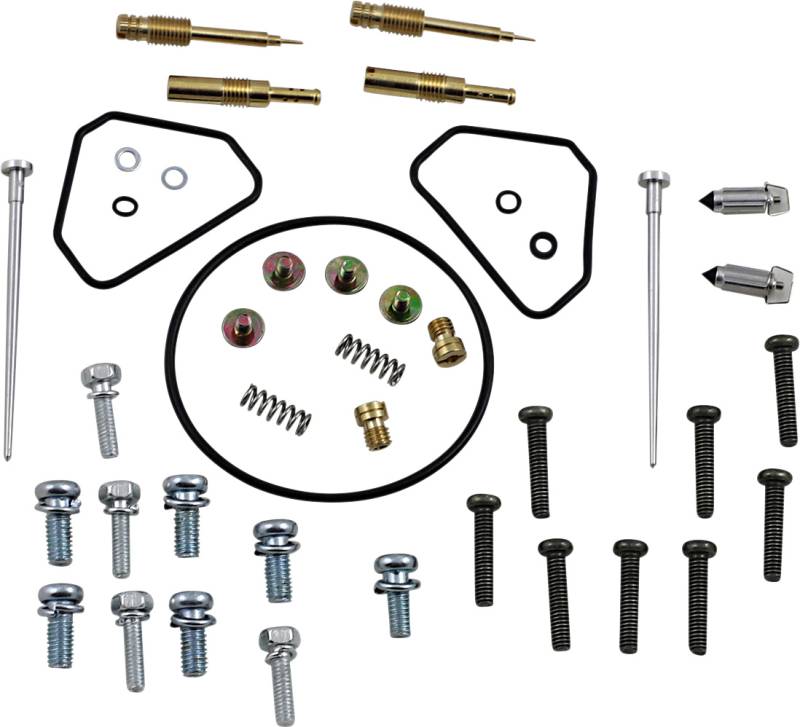 Kit includes all necessary O-rings, gaskets, jets, needle, mixture screw, float bowl screws, float valve needle and seat (needle jet and other pressed-in jets are not included in kit)