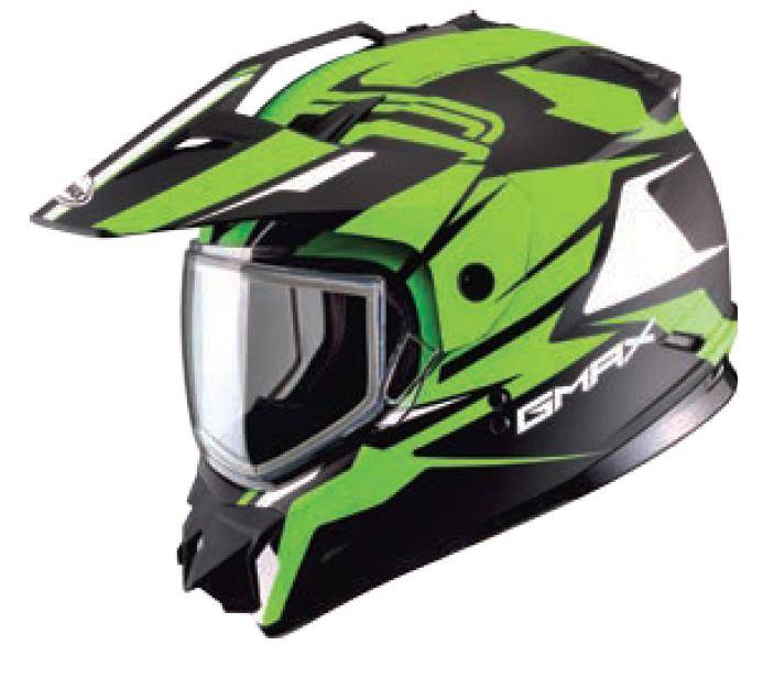 Helmet includes clear double lens, cold weather breath box and chin curtain, visor and side plate covers for use when visor is removed to give the helmet a clean full face street look