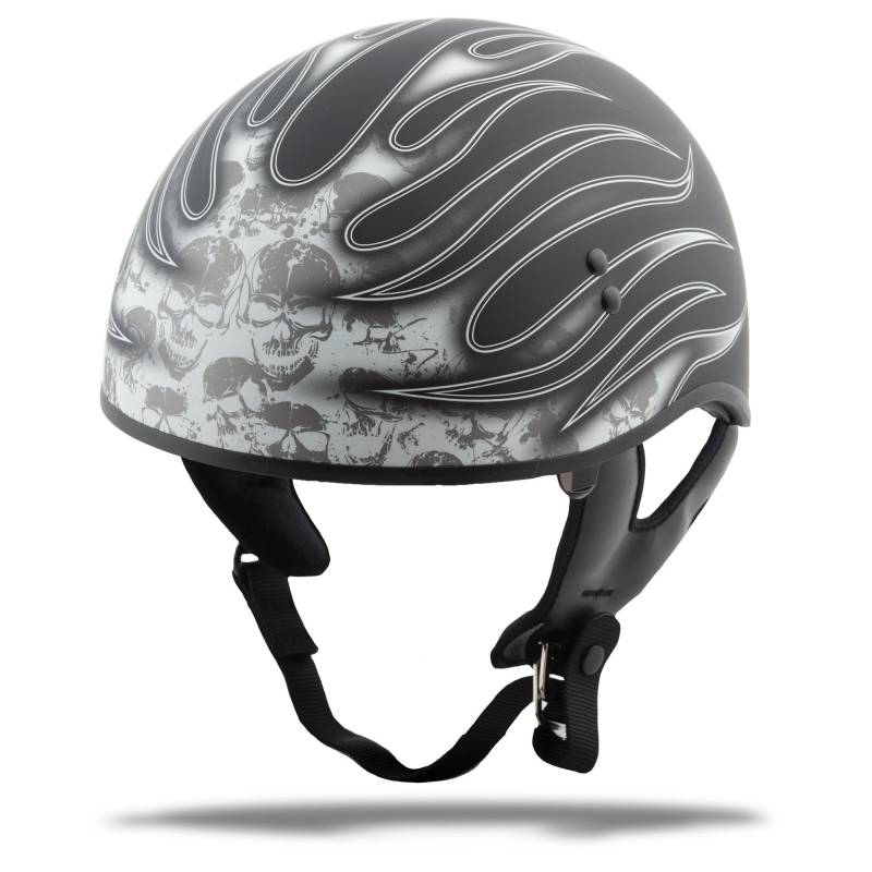 G-Max GM65 Naked Skull Flame Helmet - G1657435 - Skull Flame Flat Black/White - Medium