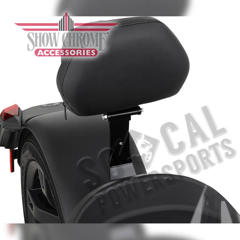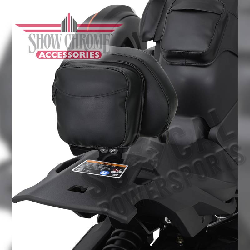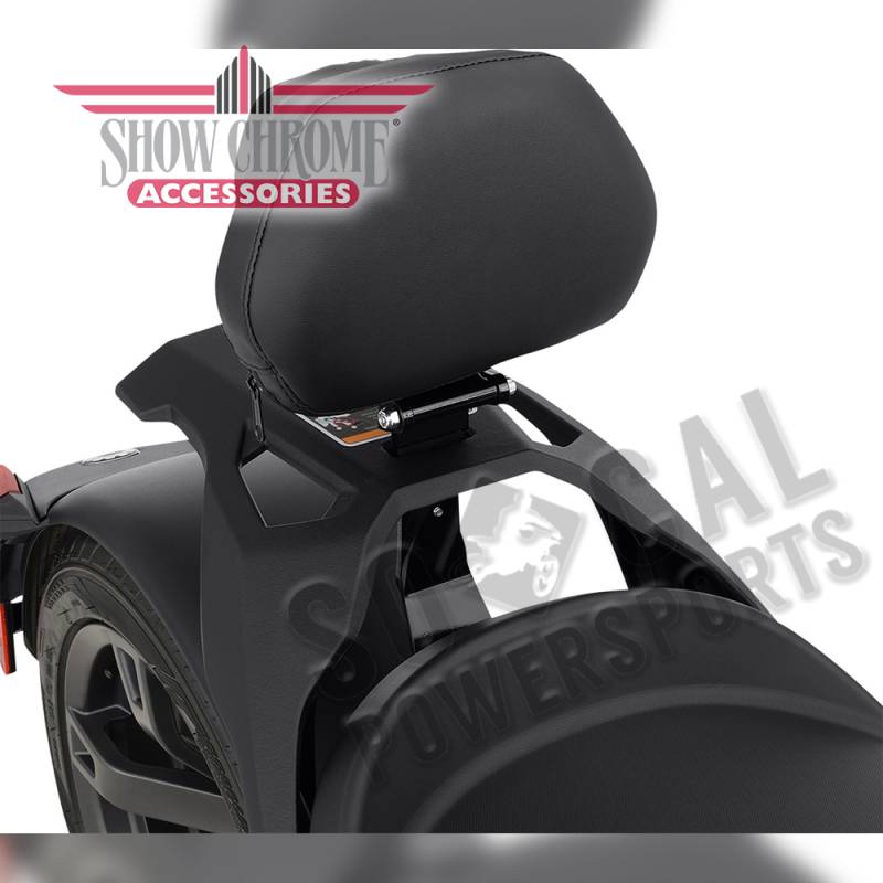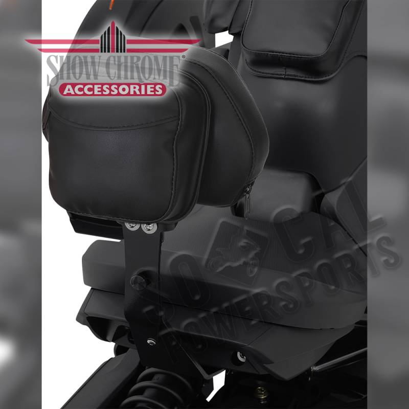 Backrest seat mount and backrest mount have been redesigned to incorporate a slide lock system that allows the backrest mount to attach through the seat opening onto two lock bolts that easily secures the backrest