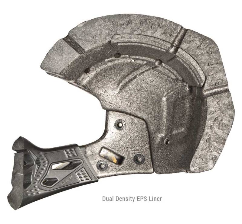 Dual density EPS liner has two layers of EPS (Expanded Polystyrene), one softer, one slightly harder, that combine to provide more progressive impact absorption for different levels of impact