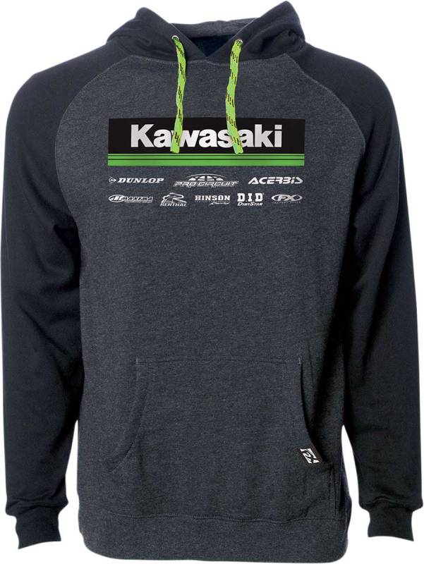 Factory Effex Kawasaki Racewear Hoodie - 24-88122 - Charcoal/Black - Medium