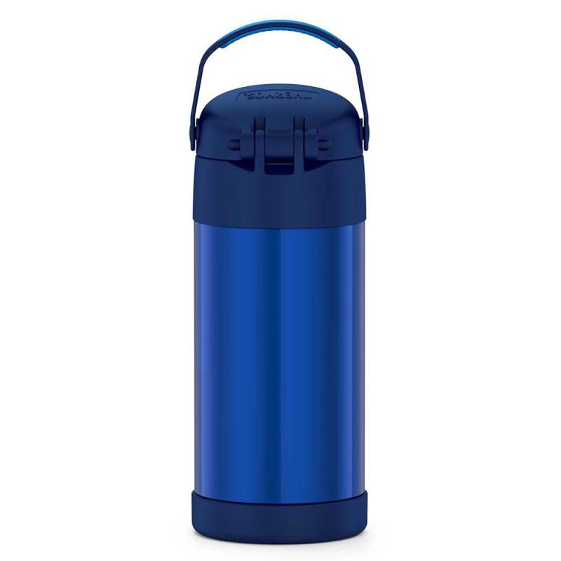 The FUNtainer® 12oz Vacuum Insulated Stainless Steel Water Bottle with Straw keeps drinks cold for up to 12 hours. The double-wall stainless steel construction is built to handle drops, dings, and assorted roughhousing. Includes an integrated carry handle with a soft-touch grip, making it easy for kids to carry with them throughout the day. Help keep germs away with the hygienically covered silicone straw which is removable for easy cleaning. To clean, you can pop your FUNtainer water bottle in the dishwasher; however, hand washing is recommended. Not for use with hot liquids.
