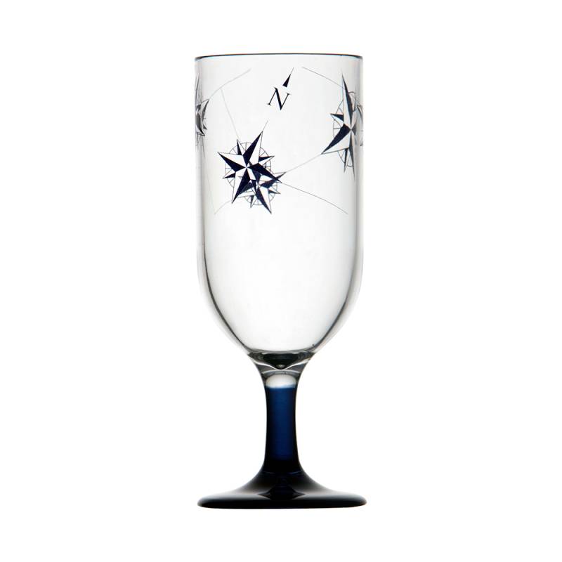 Set of 6 mini champagne glasses with a blue navy base, made of unbreakable material (MS). The product is small in size to occupy minimum space. Item designed to match all the unbreakable tableware cutlery and glassware.