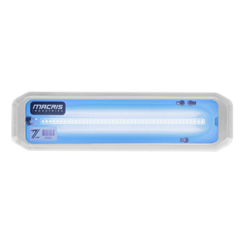 A thin, linear, ultra-uniform underwater light, the MIU L10 is great for tight spaces where a modern, bright, ultra durable light is needed. At 18W total power with full chip-on-board LED technology, the L10 is available in White, Blue, Ice Blue and Green. 10-30V variable input, with SoftStart, Active Thermal Monitoring, a billet hardcoated Polycarbonate housing and Composite Laminate Technology included. Perfect for vessels 16-20’ in length, the L10 measures 8 inches by 2.1 inches and 0.350 inches thick (203mm by 53mm by 8.9mm)