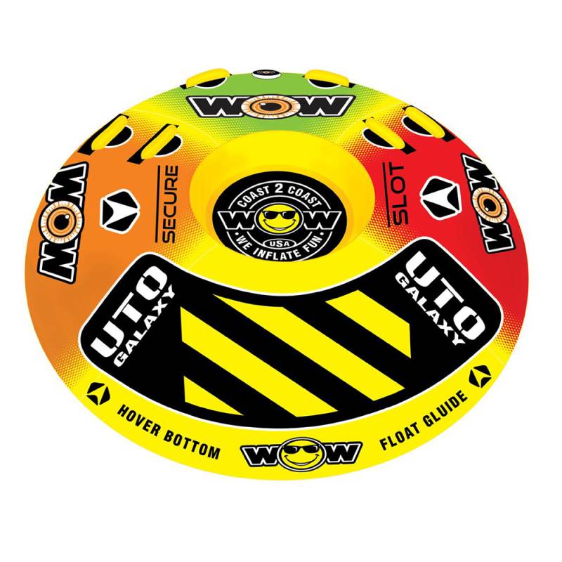The UTO Galaxy is out of this world. A perfect towable if you want your friends to think you are from another planet. This tube is a hybrid; part deck tube and part cockpit with a hover bottom to keep it fast and glide on the water with little drag.