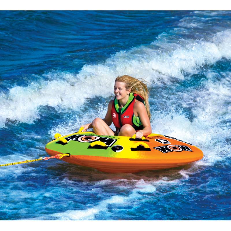 One person can ride this tube sitting in the middle, cockpit style, or you can get two riders lying down like on a traditional deck tube. The versatility makes it seem like you are getting 2 tubes for the price of 1! A great towable for your family outings on the lake.