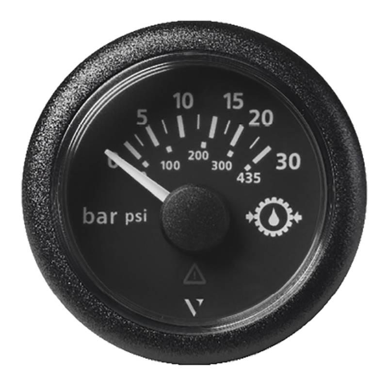 52MM (2-1/16") ViewLine Transmission Oil Pressure 30 Bar/435 PSI - Black Dial & Round Bezel