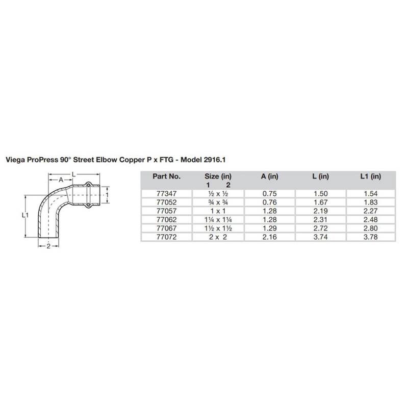 ProPress 3/4" - 90° Copper Elbow - Street/Press Connection - Smart Connect Technology