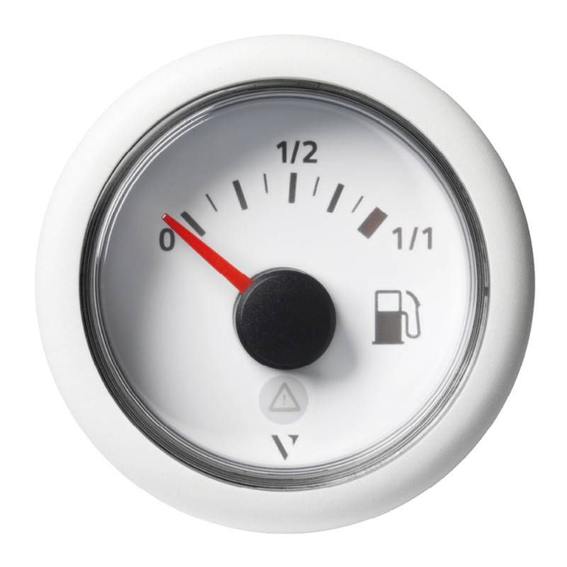 52mm (2-1/16") ViewLine Fuel Tank Level Gauge - 0 to 1/1 - White Dial & Round Bezel