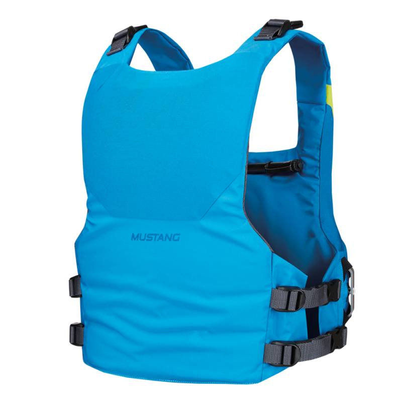 Mustang's Revolutionary dual flotation PFD. This vest inflates! It gives just enough foam to help you float and swim easily, plus it can easily be inflated to boost buoyancy with a quick pull of the manual handle when you really need it.