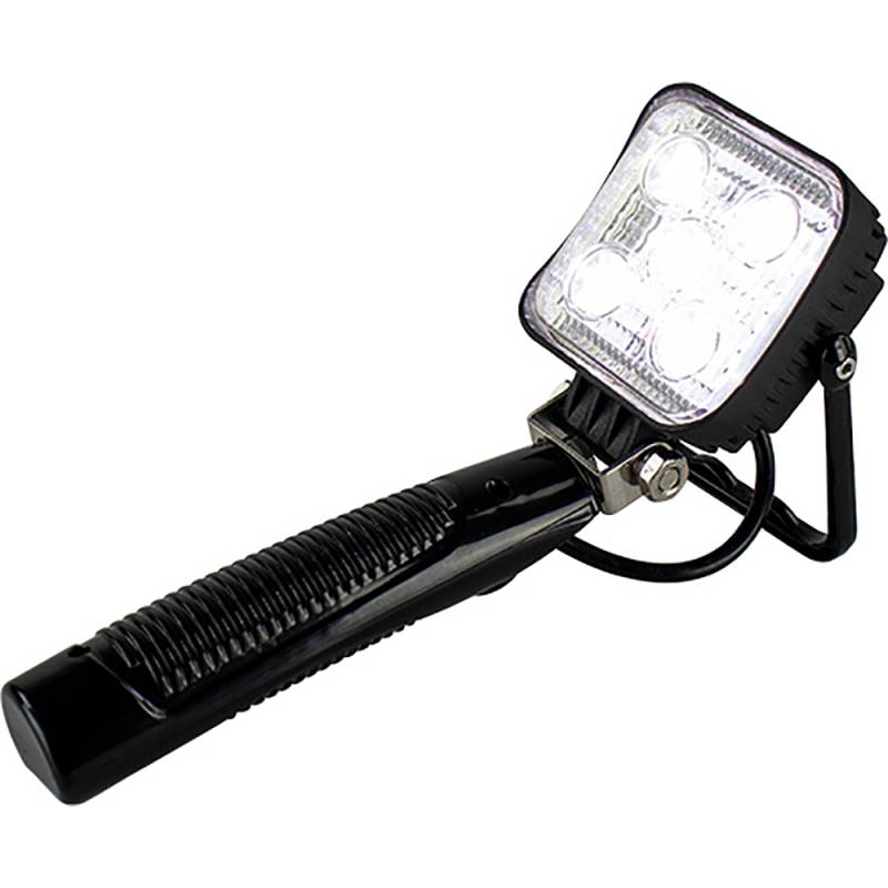 This marine grade LED Rechargeable Handheld Flood Light features five 3W high intensity Bridgelux LEDs which produce 1200 lumens. Fully adjustable, the handle allows the light to be hung or propped at many different angles to illuminate the task at hand. Includes both a 12VDC and 120VAC charge adapter. Constructed of a black powder coated aluminum housing with a stamped 304 stainless steel bracket and polycarbonate lens. 7.4V 2200mAh rechargeable Li-battery. Run time 3-4 hours. Charging time 3-4 hours. IP65 rating. CE, RoHS compliant.