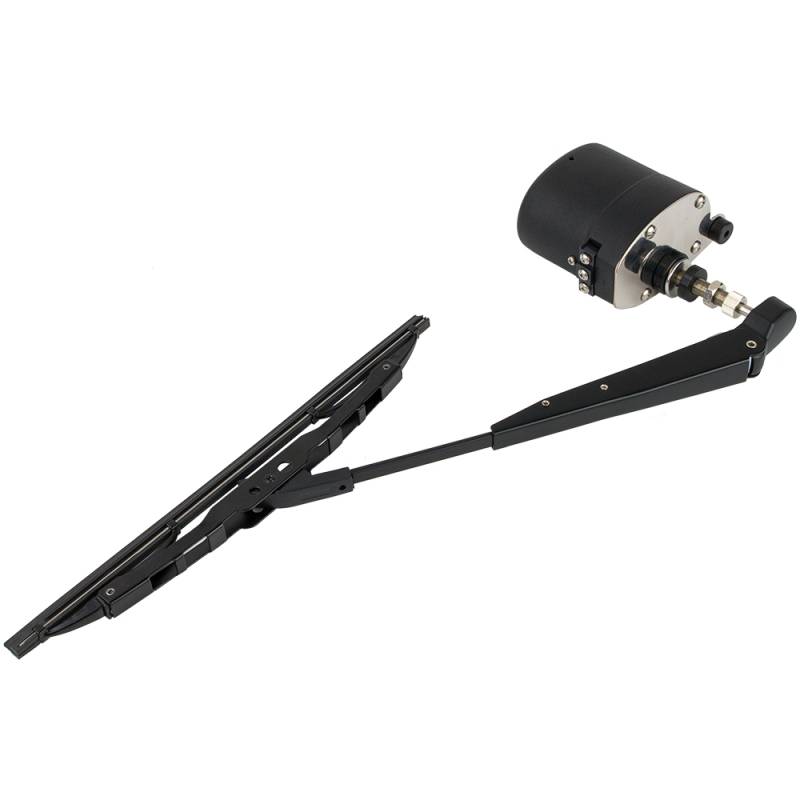 Standard Wiper Motor Kit includes a frame mount, wiper motor, adjustable standard wiper arm (9-1/2"-12-1/2"), and an 11” curved blade. Constructed of powder coated aluminum and 304 stainless steel. CE compliant. 3-year warranty.