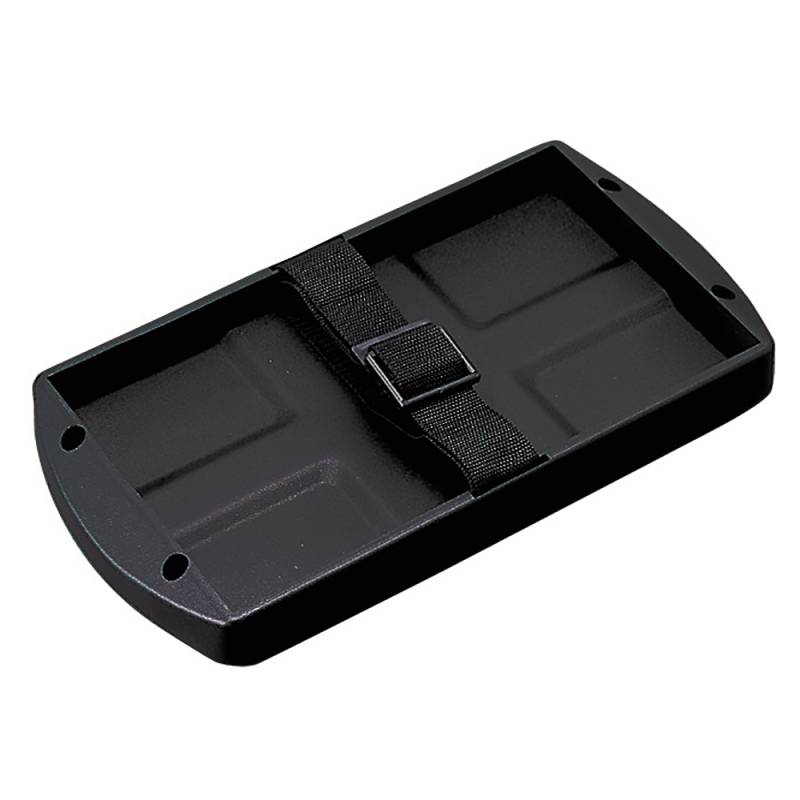 Heavy duty Battery Tray with Strap for size #24 batteries. Includes hold down strap with a quick release buckle and four 1/4"x1" PH screws with washers. Injection molded polypropylene construction.