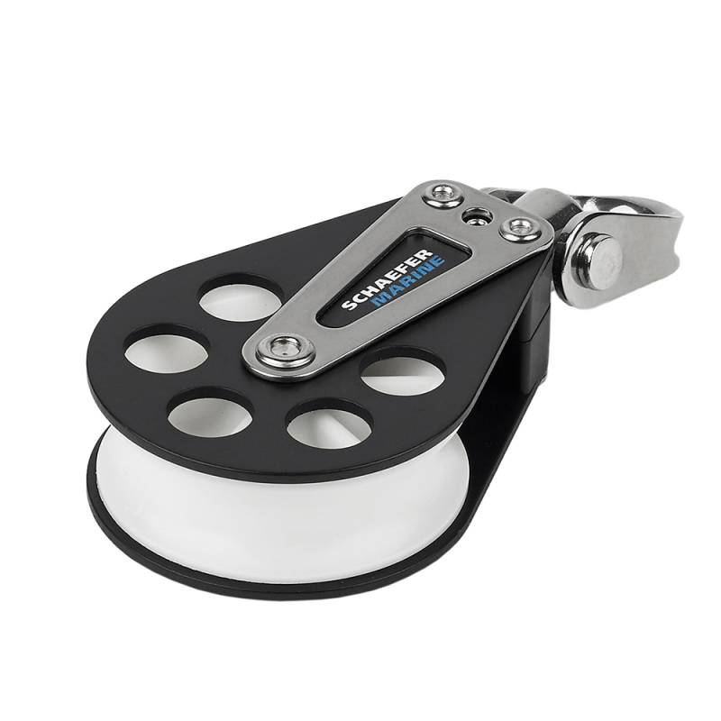 Delrin™ sheave ensures smooth operation and a high safe working load. Swivel head may be locked in place to eliminate twisting.