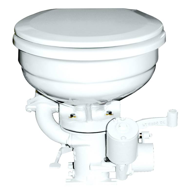 - For installation above or below the waterline; foot pedal water control allows the desired amount of flush water to be used and automatically shuts the water inlet off when the foot pedal is released