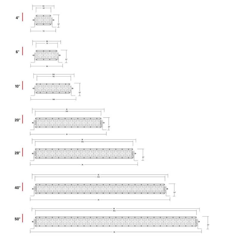 The E-Series is one of RIGID's most versatile, all-around lighting solutions, and recent enhancements in LED technology delivering up to 111% more raw lumens than ever before with the E-Series PRO. Among RIGID's most popular product lines, the E-Series PRO has recently benefited from several upgrades to improve both looks and performance. Plus, new branding and new blacked-out circuit boards give the E-Series PRO a more refined look. Available with your choice of optics, the E-Series features a host of beam options, including Spot, Flood, Driving, Hyperspot, Diffused, and new Driving/Spot and Spot/Hyperspot combinations. These and other innovations make it one of the brightest and most efficient LED light bars on the market. The E-Series was born in off-road, but its versatility makes it well suited for use with power sports, marine, general automotive and even first responder applications.