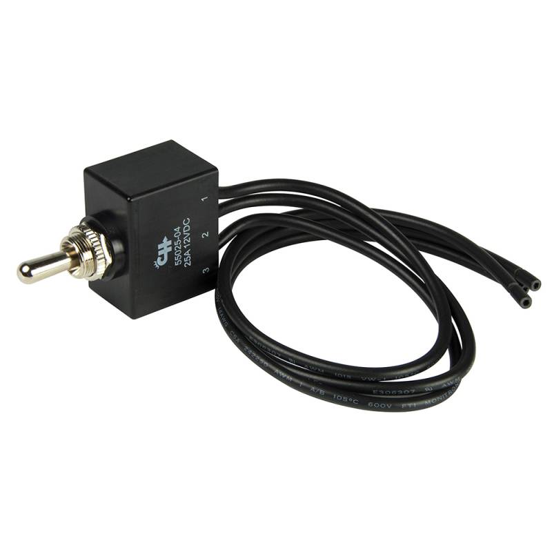 Single pole, double throw toggle switch turns one of two circuits on and off. Common applications include intermittent trim tab or windshield wiper control. Completely sealed switches built to stand up to the most extreme conditions. Engineered to IP67 specifications utilizing a double o-ring within a bushing at the toggle and a full epoxy seal at the back.