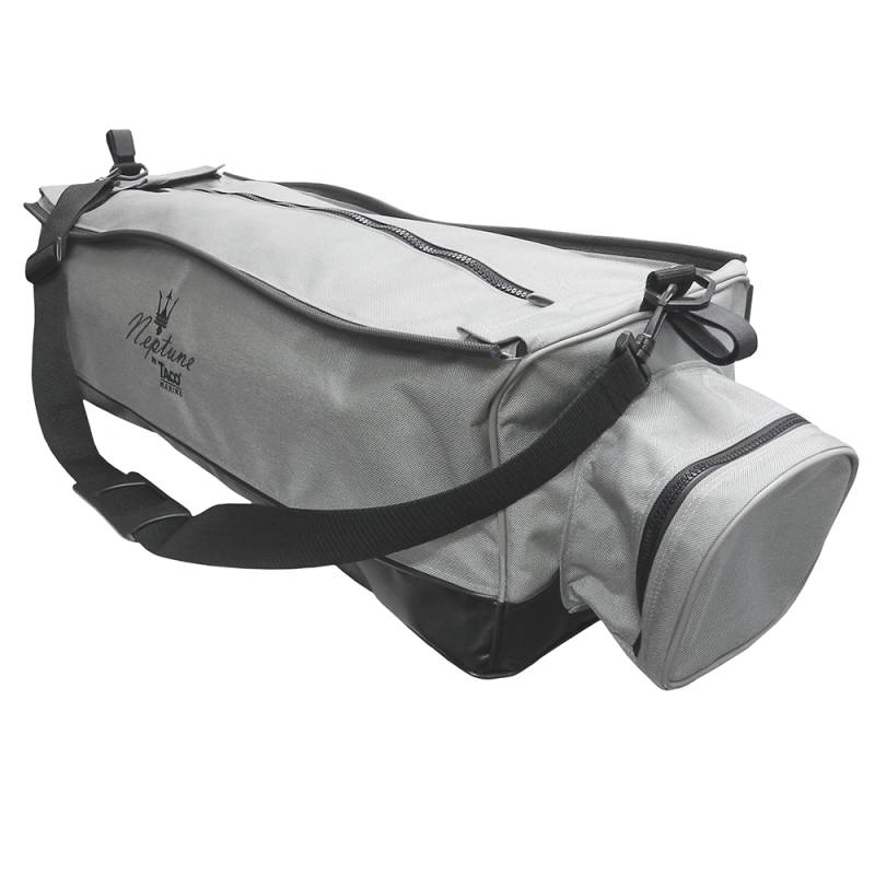 Neptune Tackle Storage BagTaco Marine introduces a much improved tackle storage system for your leaning post or as a tackle storage system on your boat. Perfect for the traveling angler who destination fishes. Made of highly durable 1000 Denier fabric and ballistic nylon bottom along with YKK Marine Grade zippers. These high quality materials not only protect all gear from the saltwater elements, but also provide a waterproof seal and durability. Due to it's design and shoulder carrying strap, the bag is easy to remove from the leaning post allowing the bag to travel with you to and from the boat with comfortable ease.