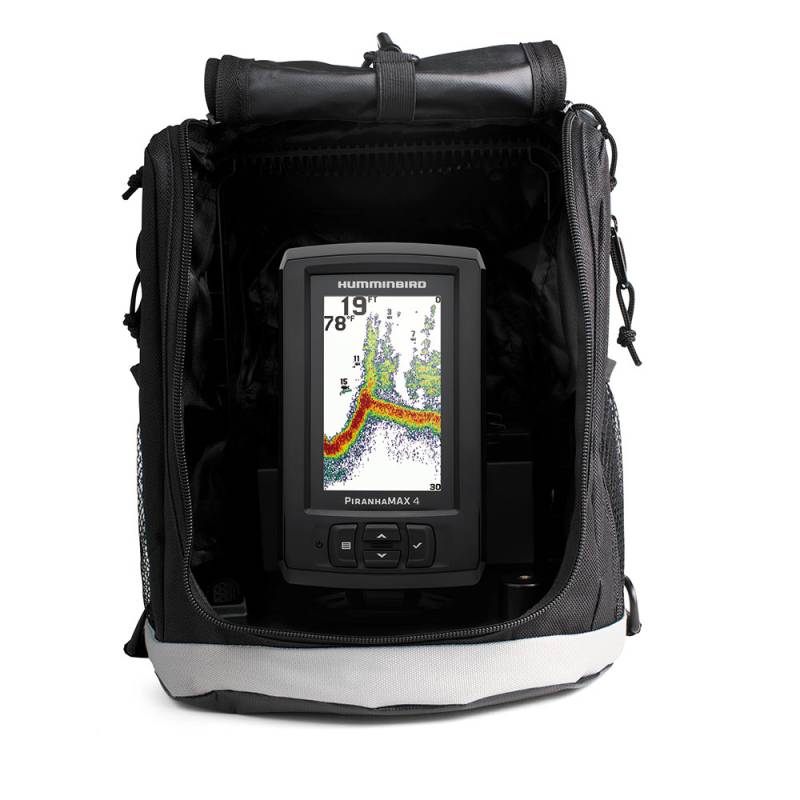 The PiranhaMAX 4 PT features a 256 color 480V X 272H, 4.3" display with 2400 watts PTP power output with Dual Frequency sonar. It comes with a portable case, portable transducer, 7 Amp Hour battery and wall charger.