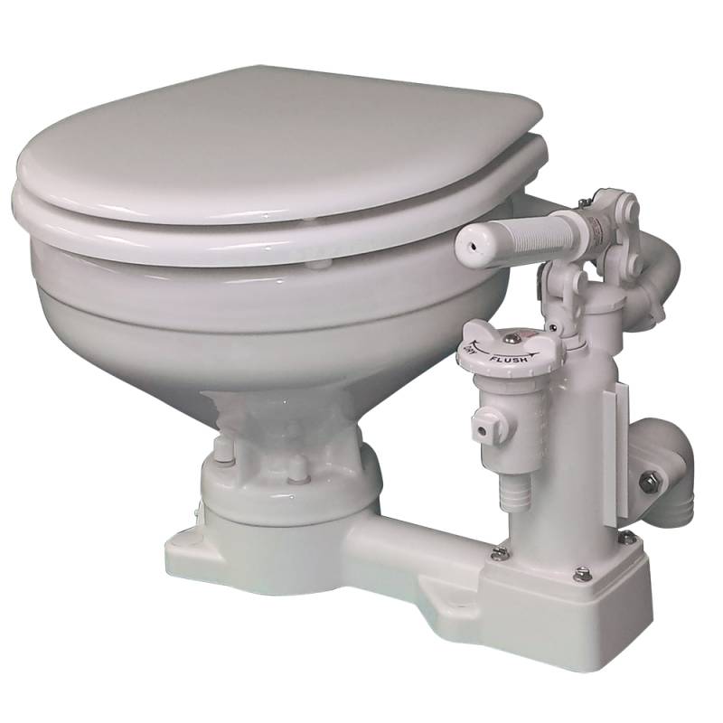 In addition to the larger housing, the pump also boasts a full size joker valve which helps to prevent clogs and improves the flushing action. A lever handle rather than a T-grip allows all users to flush the toilet with incredible ease! Being able to flush the toilet without adding water has many benefits including the ability to empty out the bowl while in heavy seas. Each unit comes with a slow close seat that include stops on the underside of the seat to help prevent the seat from shifting while in use in heavy seas.