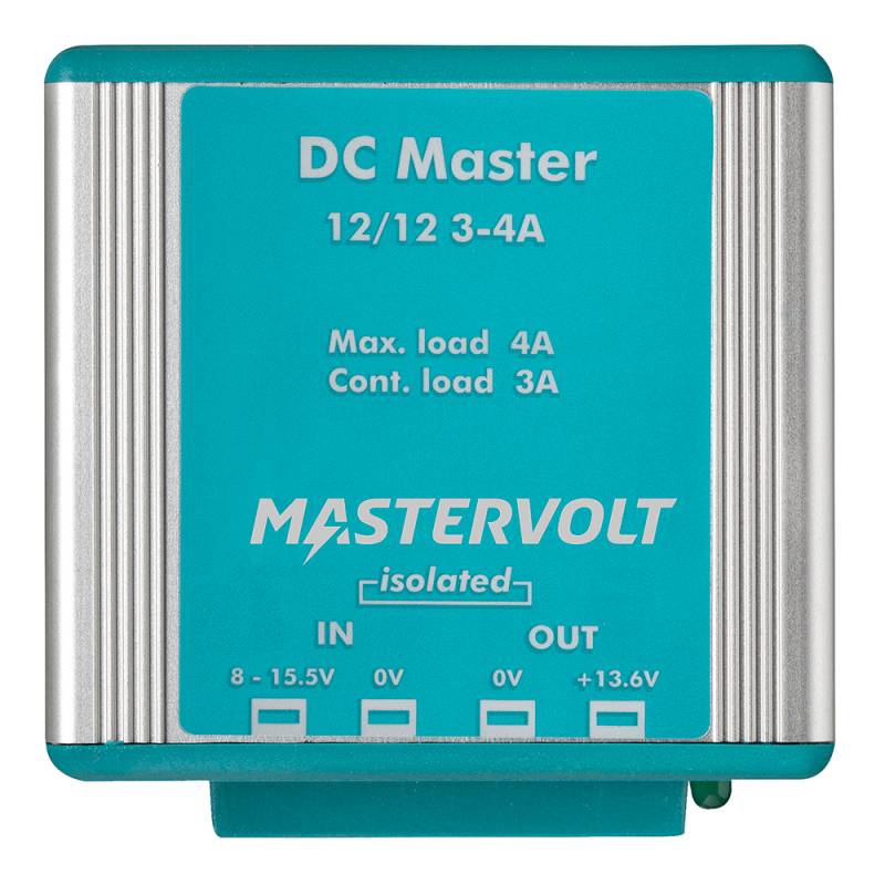 DC Master 12V to 12V Converter - 3A w/IsolatorPower you can rely onThe required voltage for DC current can vary. Some equipment requires 24 V, while onboard equipment usually requires 12 V. For custom DC current, Mastervolt offers a series of compact and made to measure DC-DC converters for both 12 V and 24 V battery systems that offer stable power with the right current for any connected consumer. There is a wide range of DC Master converters available, including insulated and non-insulated models.