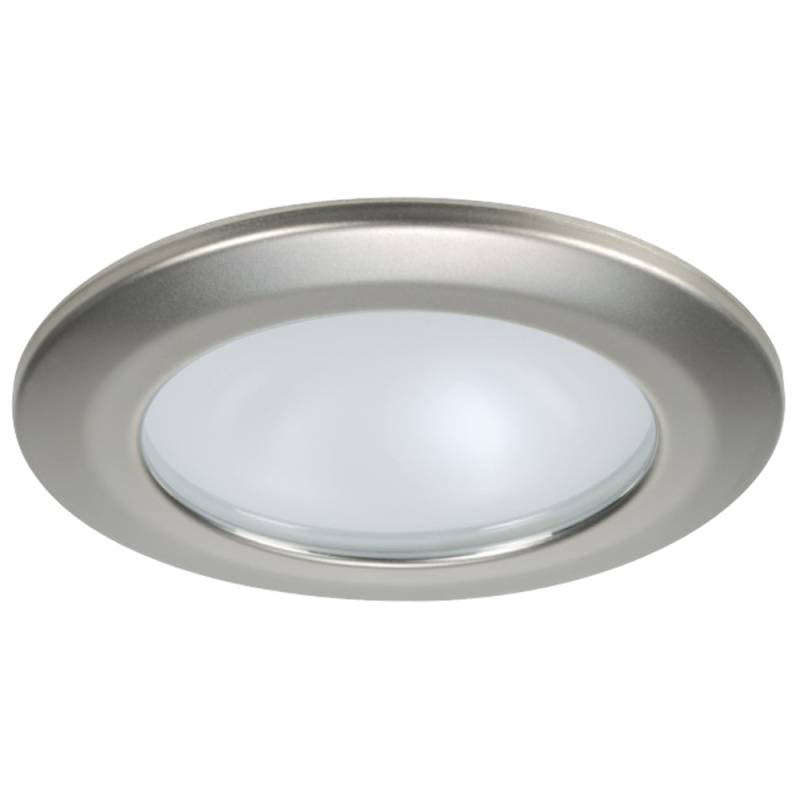 Kor XP Downlight LED - 6W, IP66, Screw Mounted - Round Satin Bezel, Round Daylight LightThe Kor is a recessed Power LED downlight. It has a 80mm round trim composed of AISI 316 stainless steel and a frosted lens. All Quick lights are two-wire dimmable.