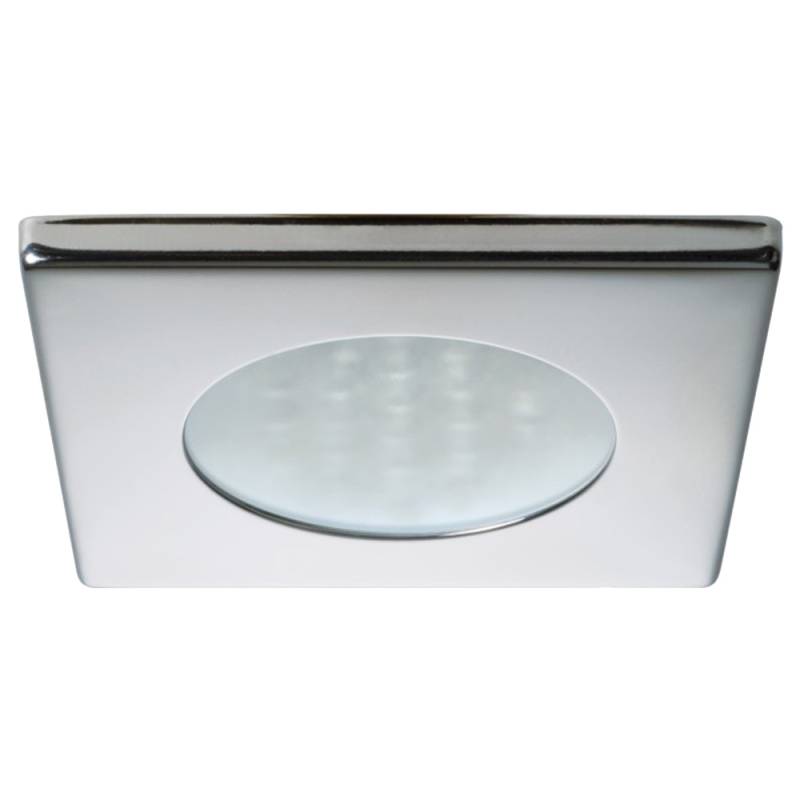 Bryan C Downlight LED - 2W, IP40, Spring Mounted - Square Stainless Bezel, Round Warm White LightThe Bryan is an IP40 recessed LED downlight. It has a 72mm square trim composed of AISI 316 stainless steel and a frosted lens. All Quick lights are two-wire dimmable.