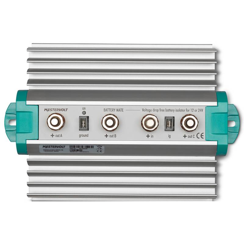 While battery isolators are conventional diode splitters, the Battery Mate's technology is electronic and includes mosfets (transistors). Its components compensate for variations in voltage and ensure that charging continues at the right voltage level, even with several battery banks. The input side on the Battery Mate is connected to the alternator and/or battery charger, while two batteries are connected to the output side. The Battery Mate is easy to install on a DIN rail (industry standard).The Mastervolt Battery Mate can be used in any application even if the standard alternator need external excitation or voltage sensing. In this case the additional IG contact can be connected.