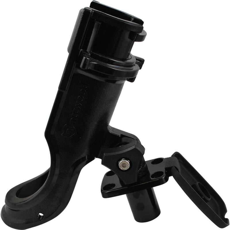 Features an ergonomic design and easy to find rapid release latch mechanism. The large, easy-grip lock-nut offers easy adjustment. 180° vertical adjustment range for a variety of rod tip height settings. Use with casting rods and spinning rods.