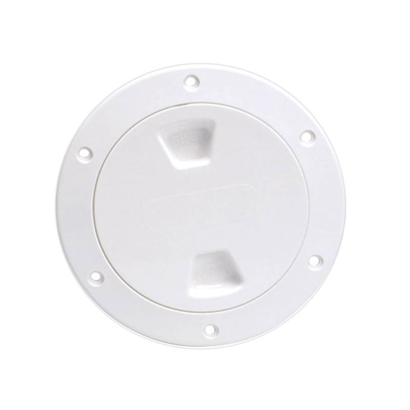 Screw-Out Deck PlateThe Beckson Screw-Out Plate was designed to provide access without the use of tools, with a single start non-jamming (no cross-thread), extra strong, self-cleaning buttress thread. They incorporate a self-aligning center and an innovative gasket to assure a watertight seal. A back-up sealing wall leaves the plate watertight, even if the gasket is removed. Deck plates are used for access to shut-off valves or back-fastenings, inspection, and clean out for tanks and compartments. A screw-out plate should be used in compartments where a change in air pressure due to temperature or oil canning can occur.