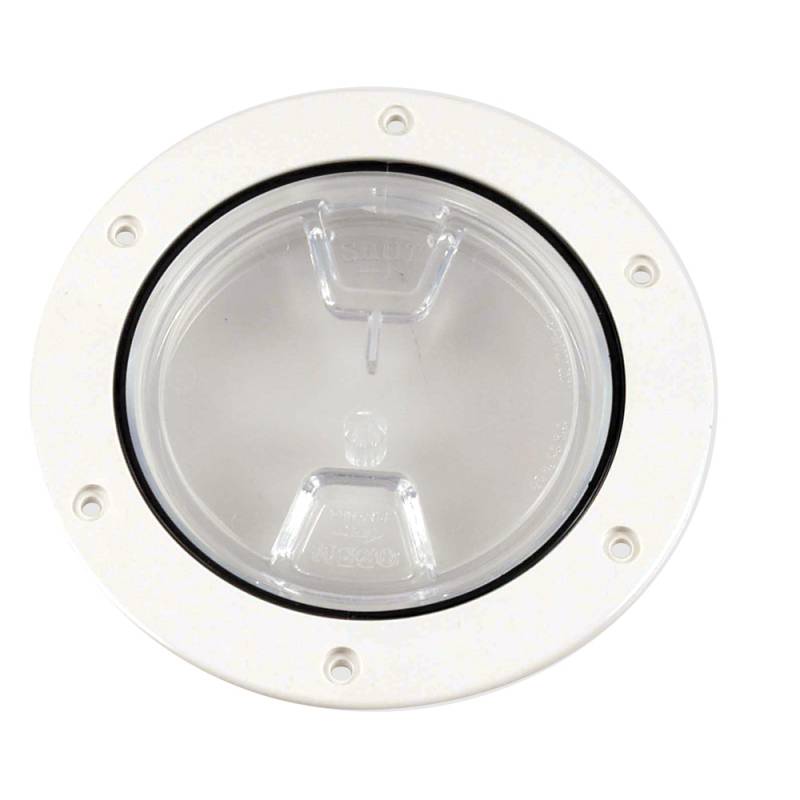 Screw-Out Deck PlateThe Beckson Screw-Out Plate was designed to provide access without the use of tools, with a single start non-jamming (no cross-thread), extra strong, self-cleaning buttress thread. They incorporate a self-aligning center and an innovative gasket to assure a watertight seal. A back-up sealing wall leaves the plate watertight, even if the gasket is removed. Our clear center plates permit observation of controls or gauges and visual inspection without the necessity of removing the center. Deck plates are used for access to shut-off valves or back-fastenings, inspection, and clean out for tanks and compartments. A screw-out plate should be used in compartments where a change in air pressure due to temperature or oil canning can occur.