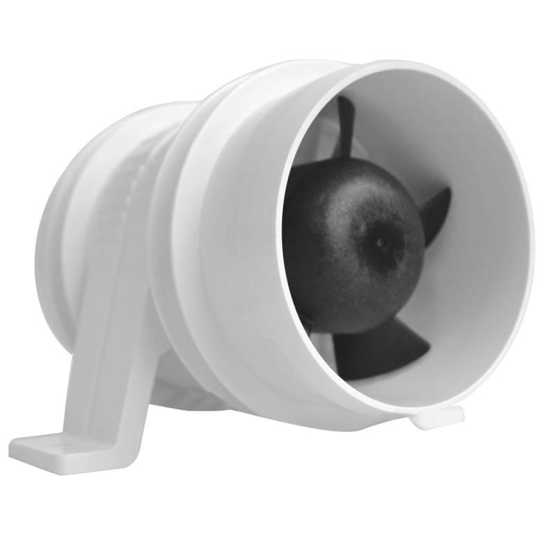 Patented in-line design - provides ventilation for engine compartments, galleys, bilges, and heads. Mounting feet allow vertical or horizontal installation in confined spaces. Install with #10 fasteners. Individual carton includes 2 tie straps. All are CE certified. 16-gauge tinned and caulked copper wire leads with optional MP1 molded rubber connectors. Improved 3" design.