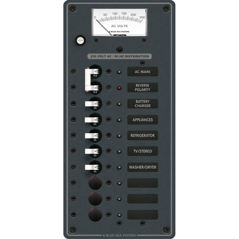 Blue Sea 8588 Breaker Panel - AC Main + 8 Positions (European) - White
