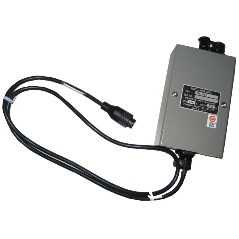 The MB1100 is a matching box for Furuno LCD sounders. It is used to connect a dual-frequency transducer to an appropriate Furuno LCD sounder. The MB1100 comes with a 10-pin connector already supplied, and so does not require the use of a separate pigtail cable assembly.