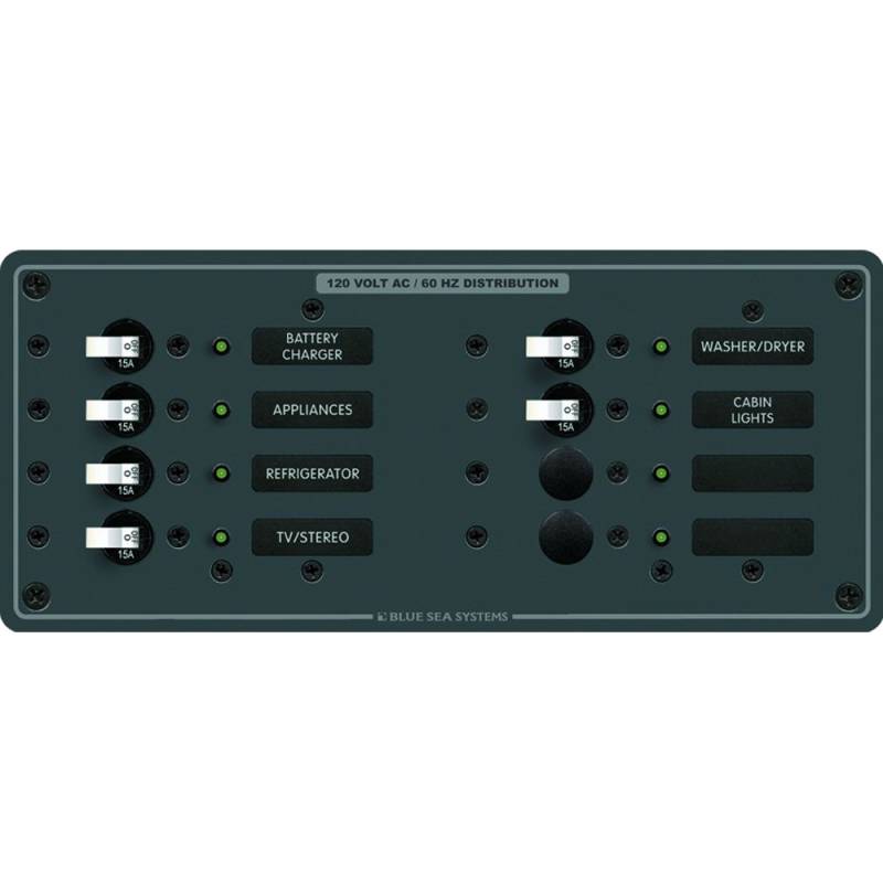AC 8 Position(6) 15A Single Pole Circuit Breakers- All hot, neutral, and safety ground buses installed, fully pre-wired