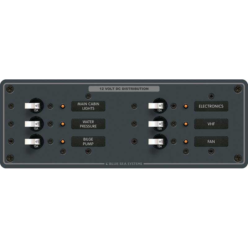 Blue Sea 8096 DC 6 Position Toggle Branch Circuit Breaker Panel - White Switches