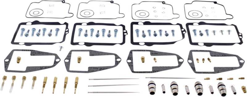 Kit includes all necessary O-rings, gaskets, jets, needle, mixture screw, float bowl screws, float valve needle and seat (needle jet and other pressed-in jets are not included in kit)